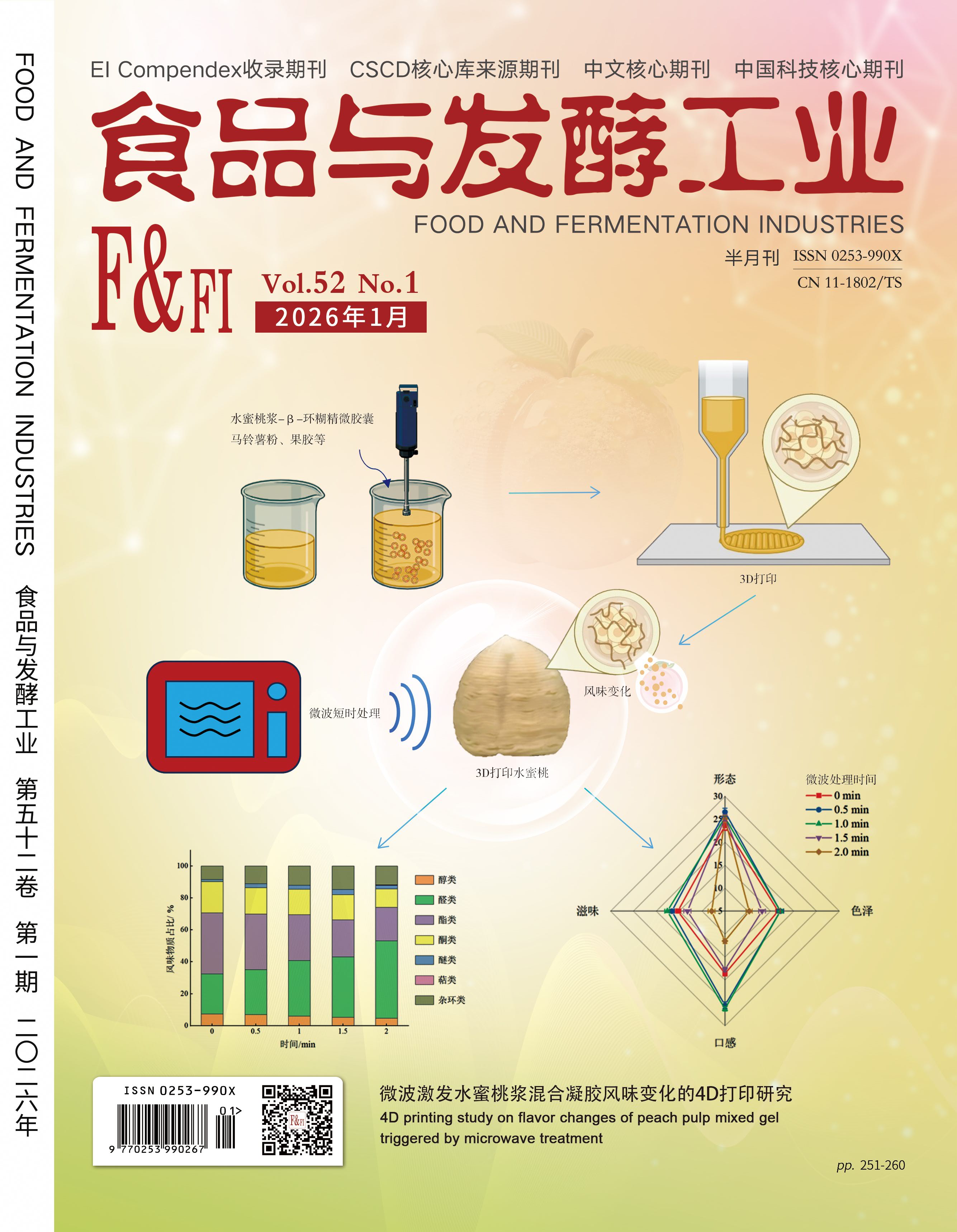 环糊精葡萄糖基转移酶(cyclodextrin glucosyltransferase,CGTase)制备环糊精(cyclodextrin,CD)时,部分淀粉底物无法被利用,导致淀粉原料利用率以及生产效率低,为解决上述问题,该研究用Escherichia coli BL21(DE3)克隆表达了一种新型淀粉脱支酶,来源于光滑念珠菌(Candida glabrata)的糖原脱支酶(glycogen debranching enzyme,GDE)CgGDE,当摇瓶发酵温度为25 ℃,诱导剂IPTG终浓度为0.1 mmol/L,诱导时间为36 h时,CgGDE的酶活力达69.3 U/mL。酶学性质结果表明,CgGDE的最适pH值为6.0,最适温度为35 ℃。利用CgGDE与β-CGTase复配制备β-CD,结果表明,在非溶剂条件下,当马铃薯淀粉质量浓度为50 g/L,温度40 ℃,反应pH值为6.0,CgGDE添加量为750 U/g干淀粉,β-CGTase添加量为7 U/g干淀粉,转化周期24 h时,β-CD转化率为53.1%,比单独使用β-CGTase转化率提高了93.8%,与异淀粉酶β-CGTase联用相比,转化率提高了50.9%,为β-CD在非溶剂条件下的转化奠定了基础。