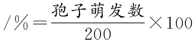 将PepatA缺失、回复突变和野生型菌株的孢子悬浮液(10 μL,1×106个/mL)接种于CYA培养基,黑暗条件下25 ℃培养7 d。分别在3、5、7 d后观察菌落形态并记录菌落直径变化;用洁净的涂布棒刮取平板上培养7 d的孢子,血细胞计数板对孢子悬浮液计数,计算产孢量;将无菌盖玻片斜插在固体CYA培养基上,分别将滴加各菌株的孢子悬浮液置于盖玻片与培养基交联处,25 ℃黑暗环境下培养48 h,分别在12、36、48 h观察并记录菌丝形态特征;在直径为1 cm的琼脂圆片上分别接种各菌株的孢子悬浮液,黑暗环境下25 ℃培养12 h,观察统计不同时间点孢子萌发率和芽管长度,芽管长度用显微镜的目镜测微尺进行测定,计数200个孢子,统计芽管长度大于相应芽孢直径的孢子,按照公式(1)计算孢子萌发率:
