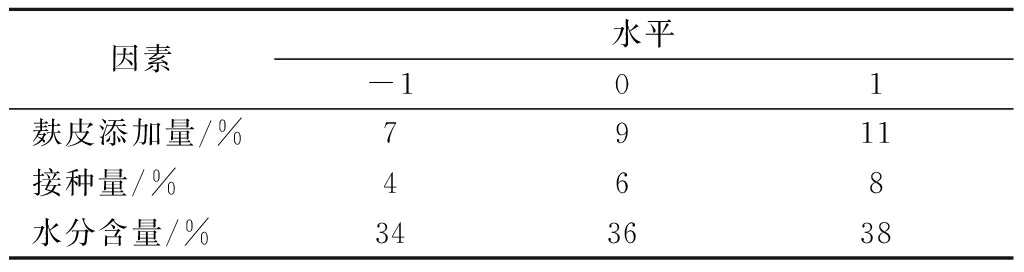 因素水平-101麸皮添加量/%7911接种量/%468水分含量/%343638