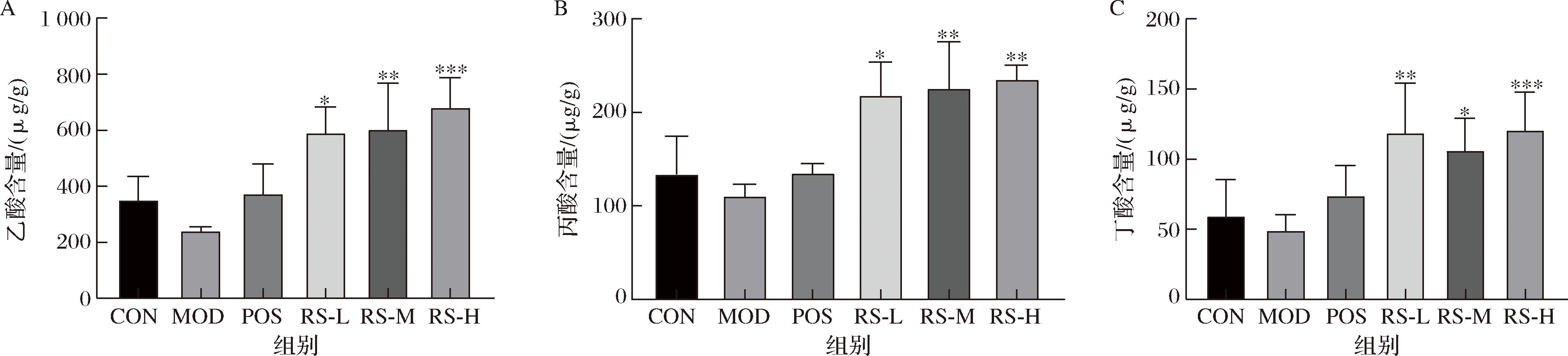 A-乙酸;B-丙酸;C-丁酸