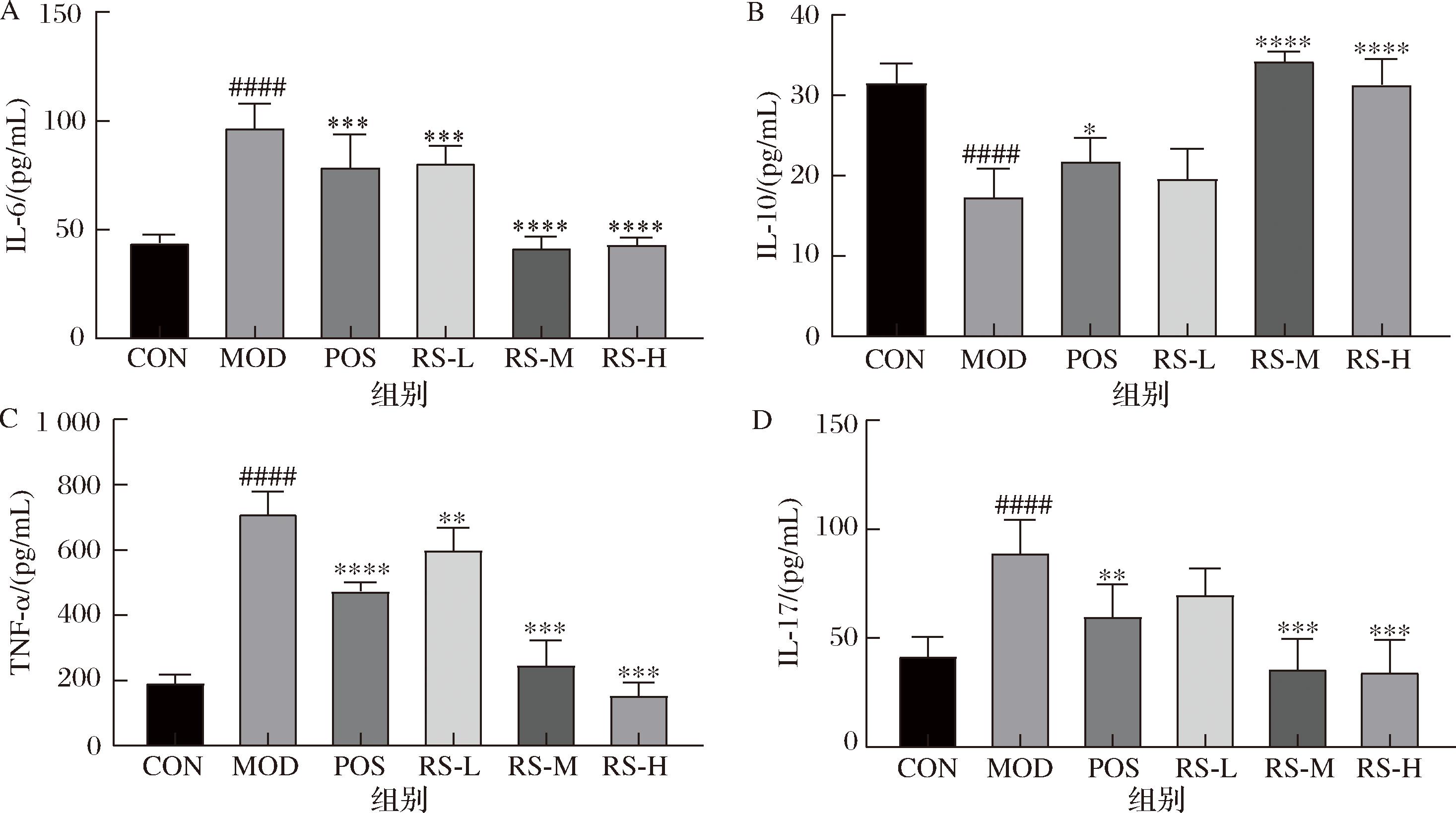 A-IL-6;B-IL-10;C-TNF-α;D-IL-17