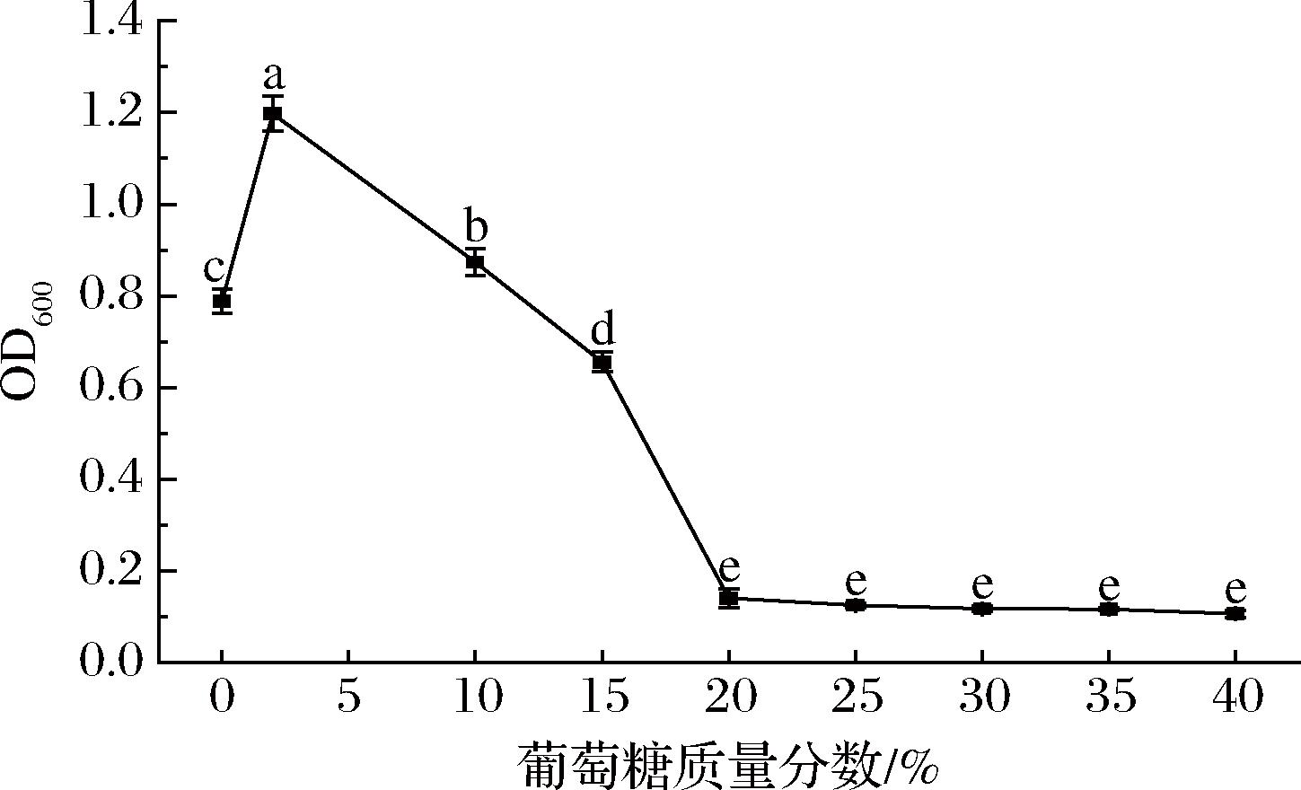 图7 葡萄糖质量分数对菌株KC-4生长的影响
