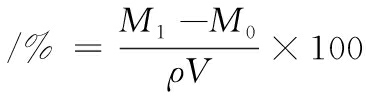 式中:M1是气凝胶浸泡乙醇后的质量,mg;M0是气凝胶的初始质量,mg;ρ是无水乙醇的密度,0.79 g/cm3;V是气凝胶的体积,cm3。