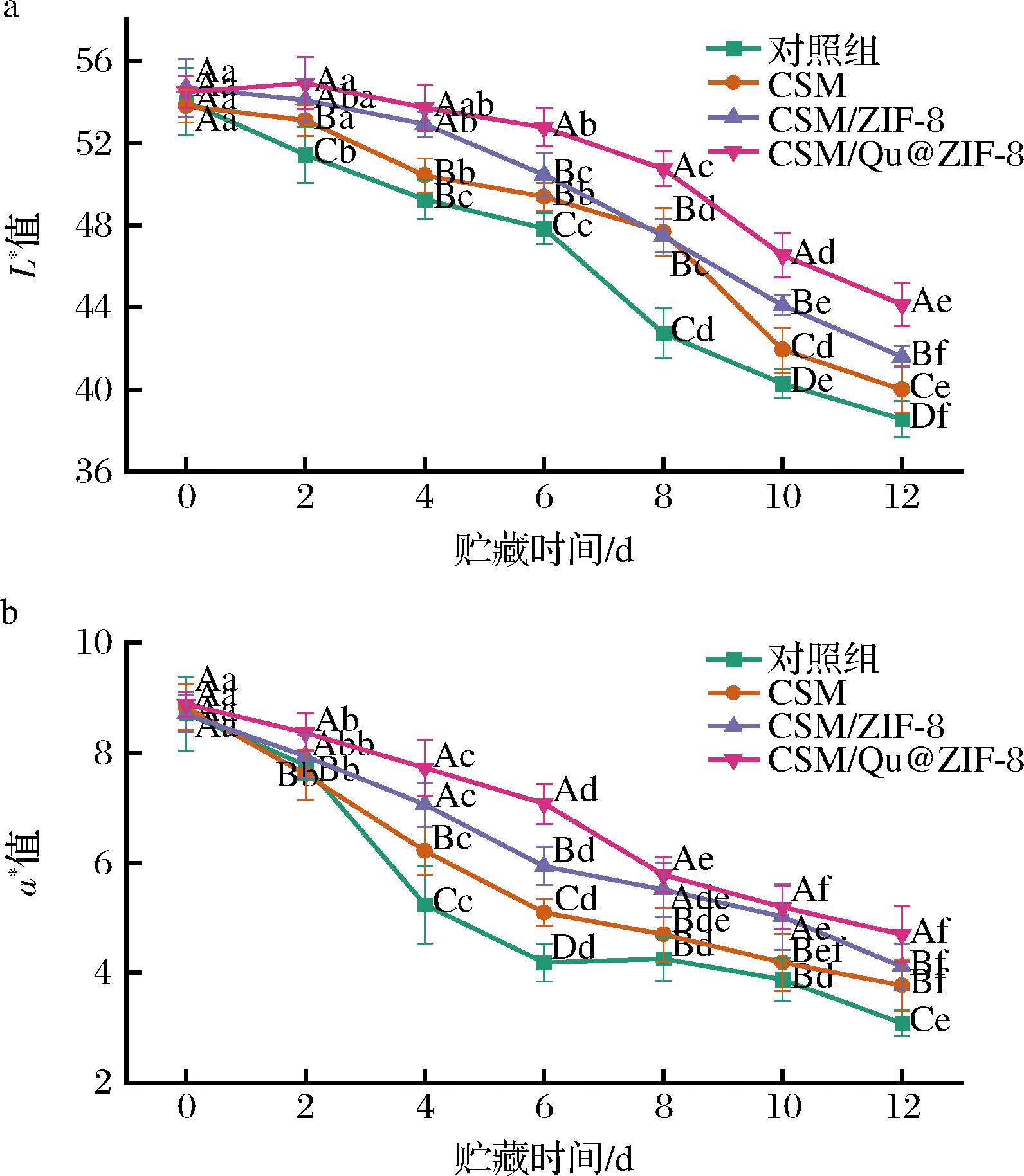 a-L*值;b-a*值