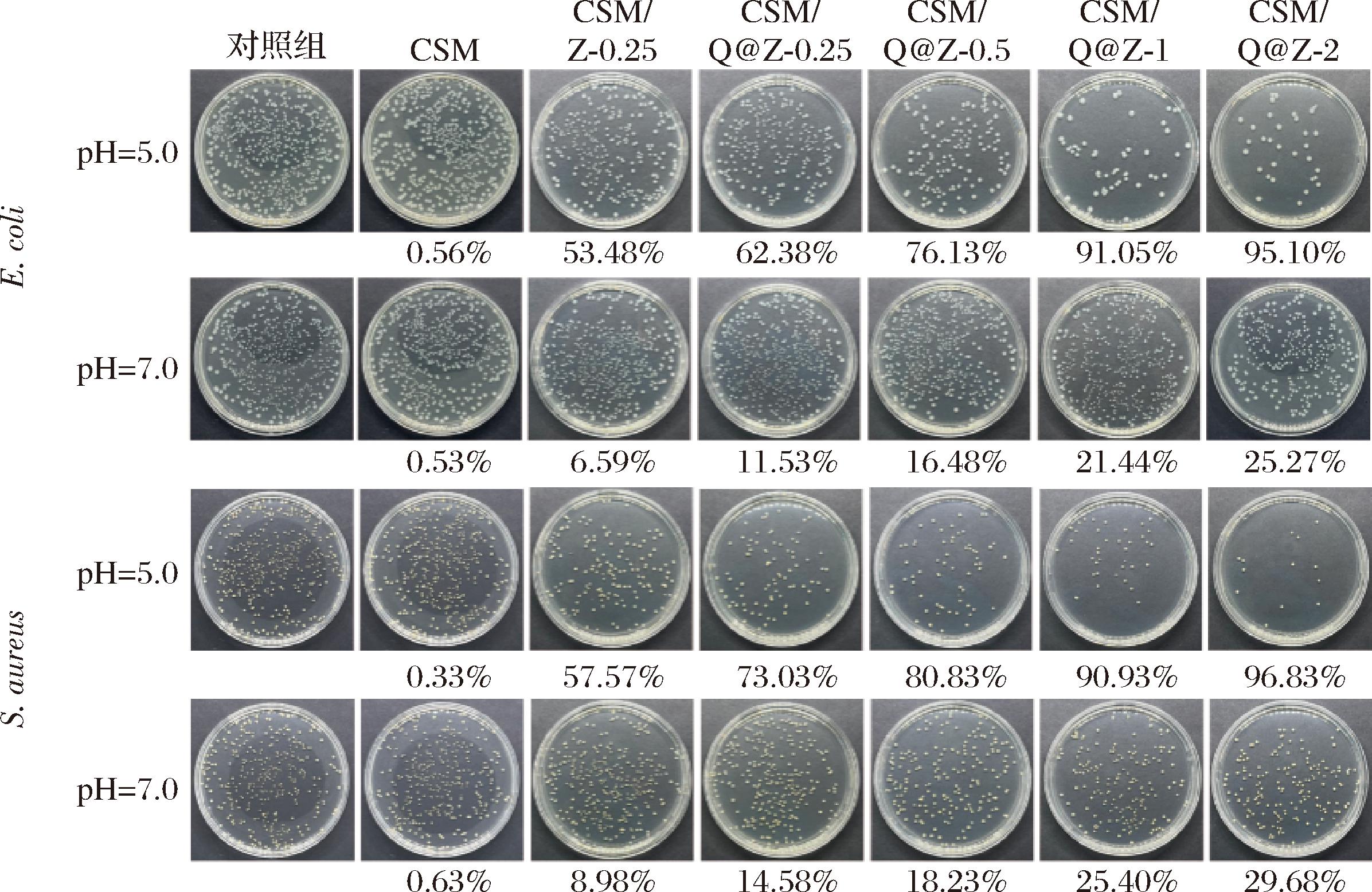 式中:C0是不含气凝胶的对应pH的缓冲液的菌落数,CFU;Cn是气凝胶组的菌落数,CFU。