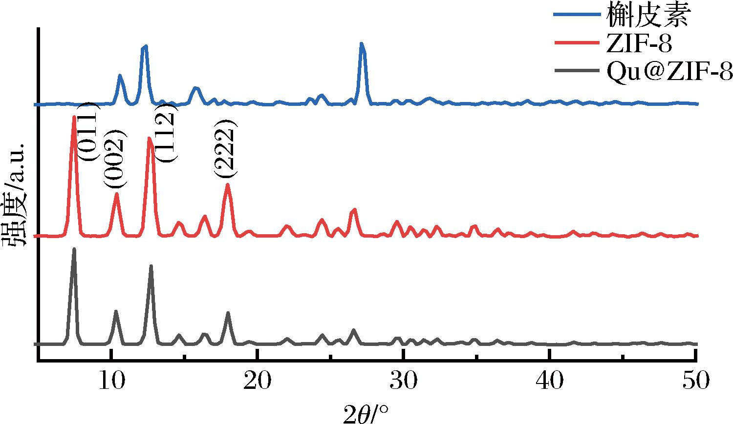 分析ZIF-8和Qu@ZIF-8的晶体结构,测量范围为5°~50°,步长0.02°。