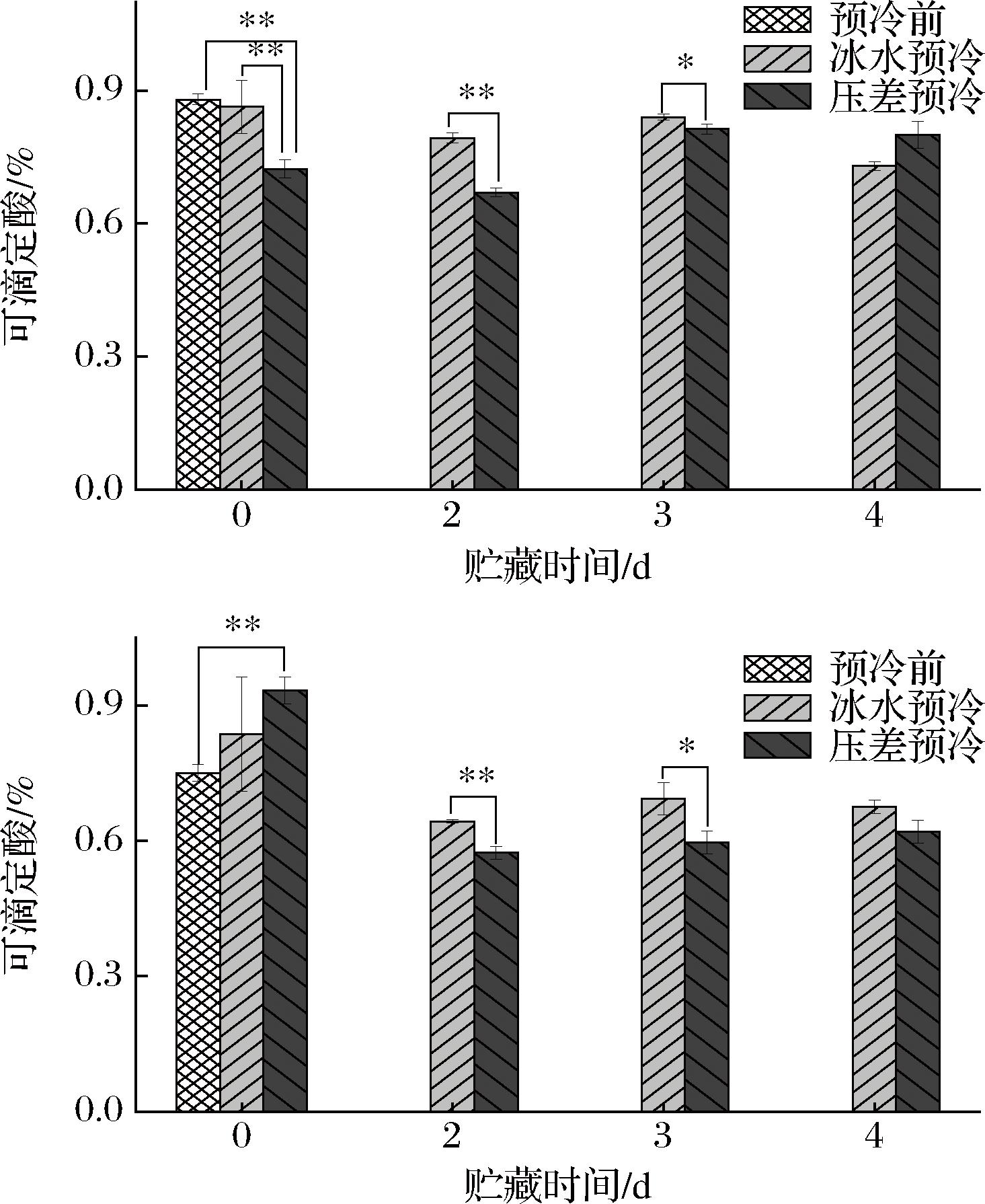图9 预冷方式对荔枝可滴定酸的影响