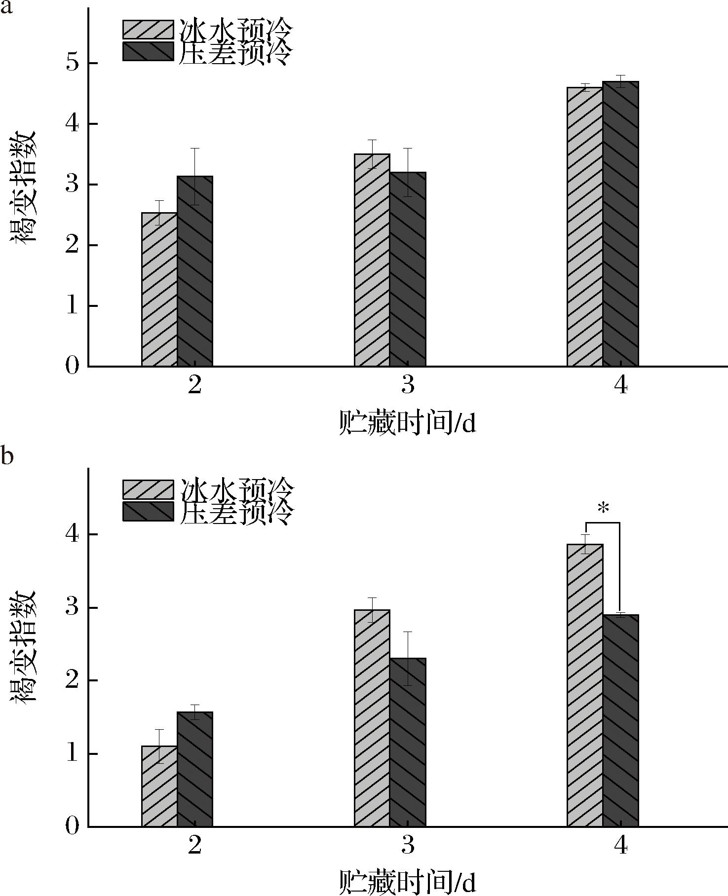 图4 预冷方式对荔枝褐变指数的影响