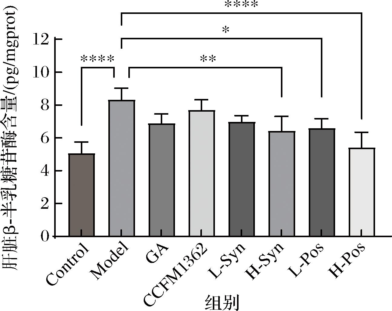 图5 小鼠肝脏β-半乳糖苷酶含量