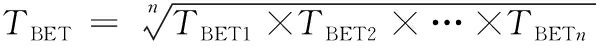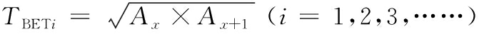 式中:Ax,识别错误的最大样品浓度,mg/L;Ax+1,更高一级的样品质量浓度,mg/L;TBETi,个人阈值,mg/L;TBET,组阈值。