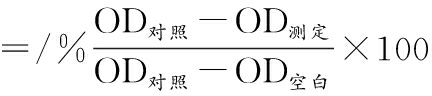 式中:OD测定、OD对照及OD空白分别为测定管、对照管及空白管中样本在波长为517 nm处的OD值。