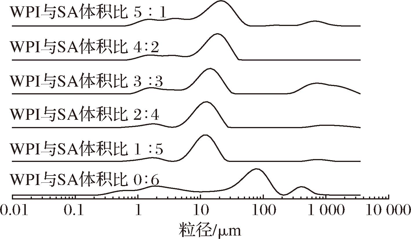 图2 用于制备乳液凝胶球的WPI-SA复合物乳液的粒径分布图