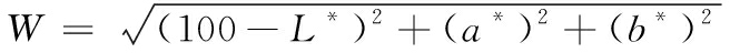 表3 WPI-SA乳液凝胶球L*、a*、b*和W值