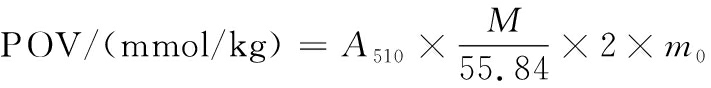 式中:A510,510 nm吸光值;M,Fe2+的标准曲线斜率;m0,比色时相当样品质量,g。