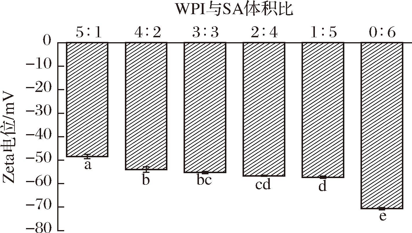 图1 用于制备乳液凝胶球的WPI-SA复合物乳液的Zeta电位