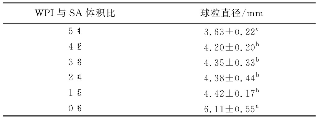 WPI与SA体积比球粒直径/mm5∶13.63±0.22c4∶24.20±0.20b3∶34.35±0.33b2∶44.38±0.44b1∶54.42±0.17b0∶66.11±0.55a