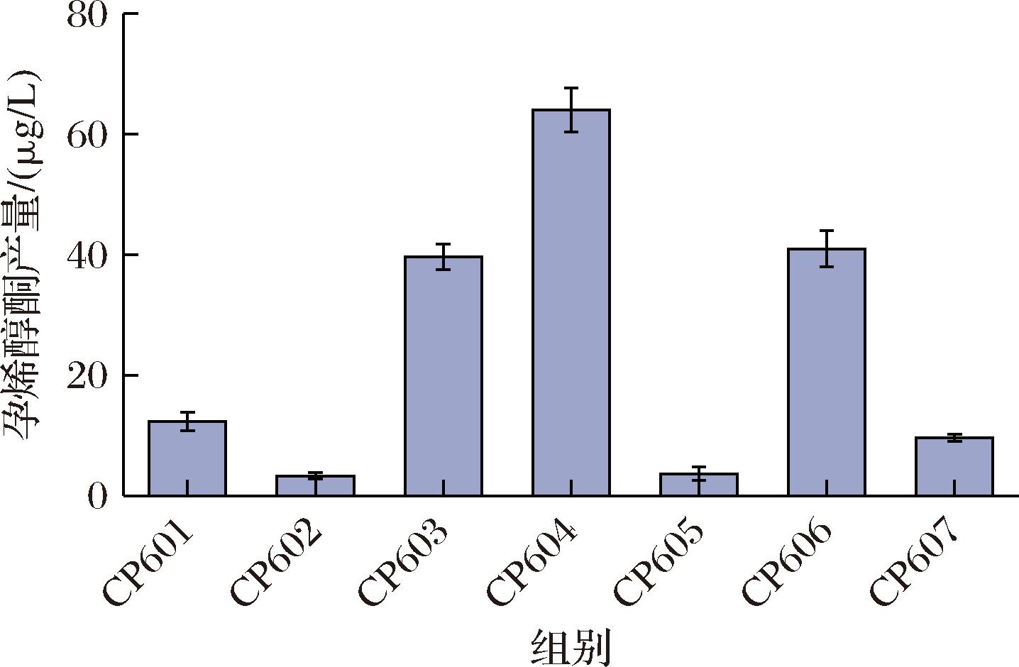 DNA聚合酶,诺唯赞生物科技股份有限公司;琼脂糖凝胶DNA回收试剂盒、小量质粒提取试剂盒,上海生工生物有限公司;葡萄糖、KOH等常规试剂,国药集团药业股份有限公司;孕烯醇酮标品,上海源叶生物科技有限公司;聚乙二醇PEG3350,索莱宝生物科技有限公司;醋酸锂,阿拉丁生化科技有限公司;N-甲基-N-(三甲基甲硅烷基)三氟乙酰胺[bis(trimethylsilyl)trifluoroacetamide,BSTFA],美国Sigma Aldrich公司。