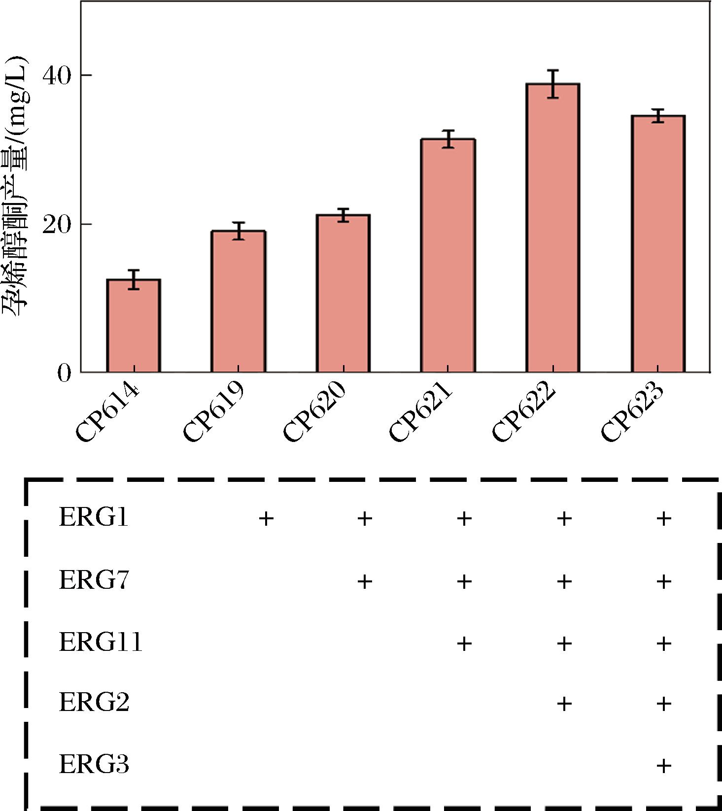 Fig.6 Effects of overexpressing different ERG genes on pregnenolone production