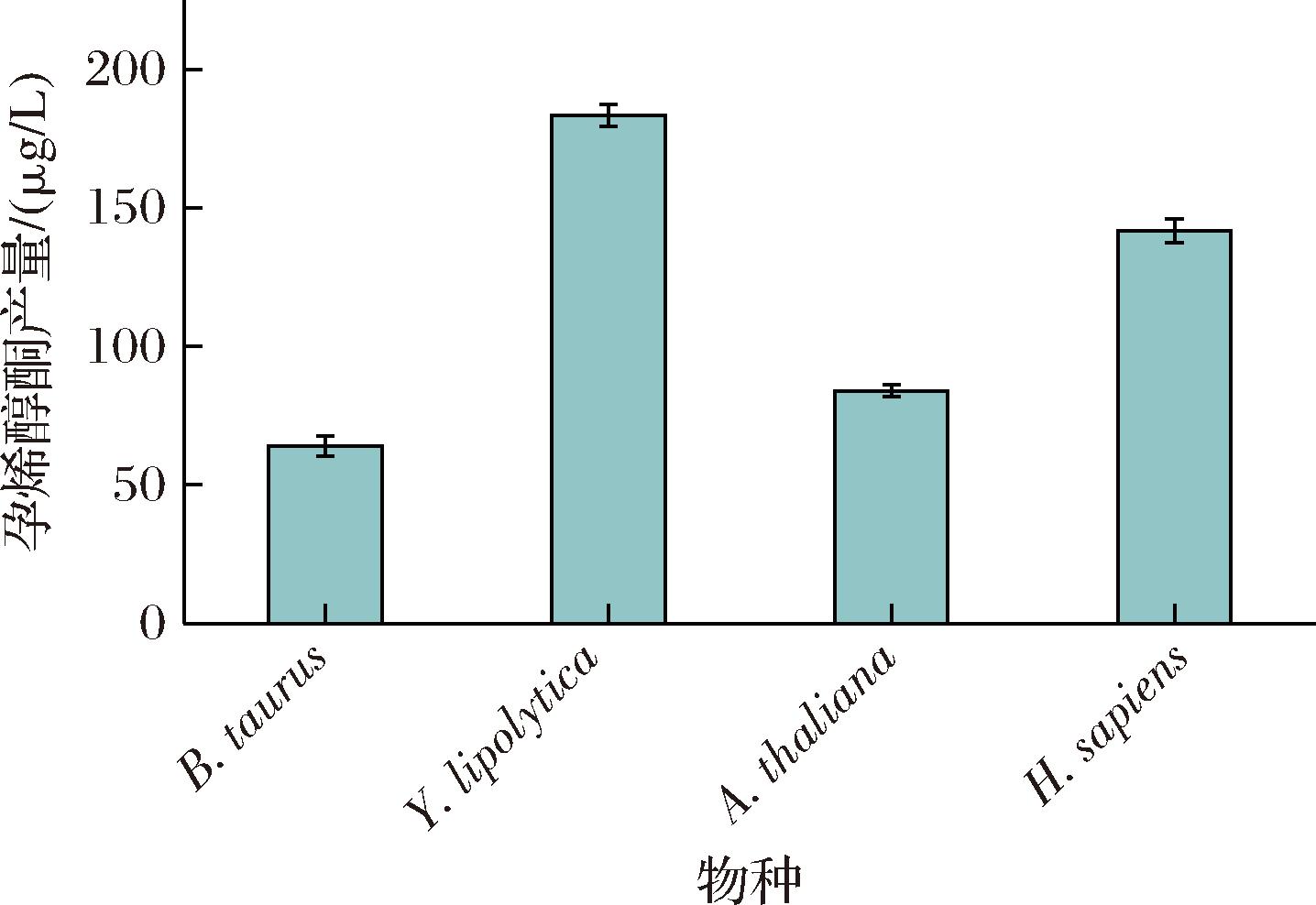 图4 不同物种来源AdX/AdR的孕烯醇酮产量
