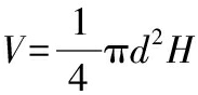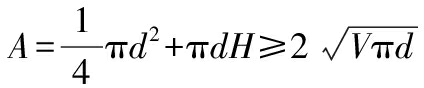 式中采用与生产体系一致的径高比(d/H=2/3),可获得给定体积下的最小传热表面积,得到公式(5)、公式(6):