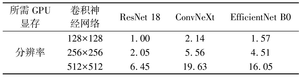 所需GPU显存卷积神经网络ResNet 18ConvNeXtEfficientNet B0分辨率128×1281.002.141.57256×2562.055.564.51512×5126.4519.6316.05