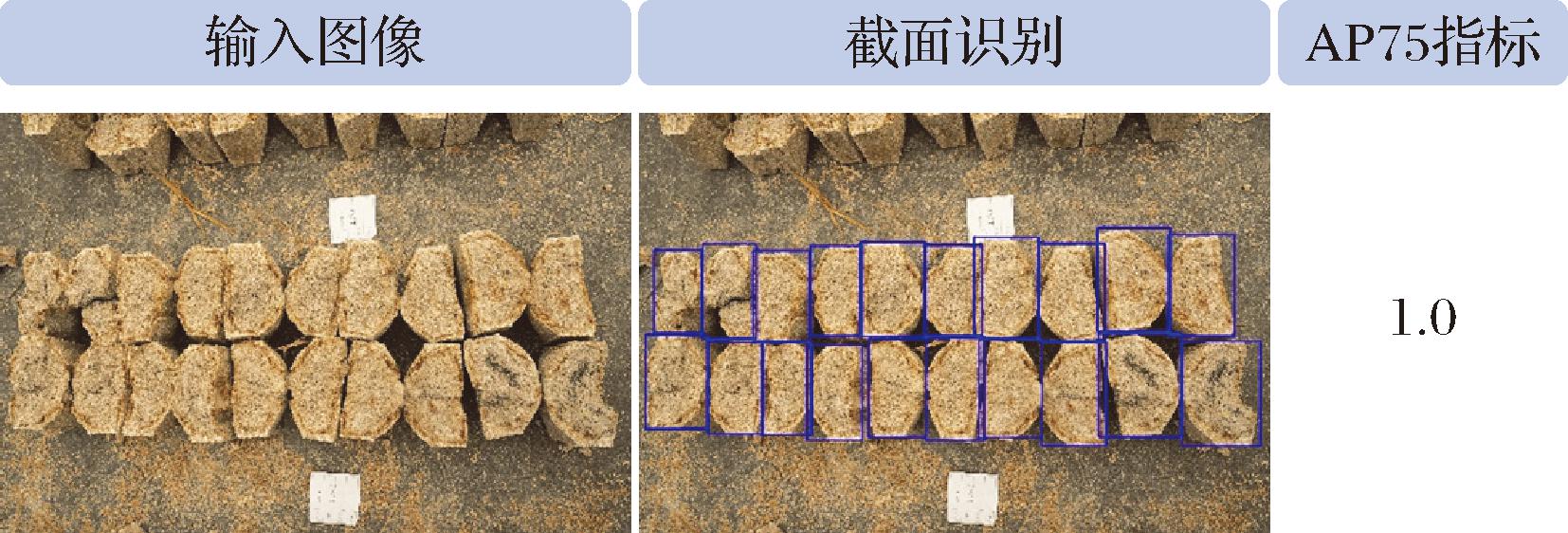 截面识别模块旨在对包包曲照片中的包包曲截面进行目标检测识别。如第1节所述,包包曲照片和截面标注用于构建包包曲截面识别模块,具体地,根据包包曲截面的多边形轮廓标注生成外接矩形,以作为截面识别的目标框。在本研究中,每张包包曲照片均包含有20个包包曲截面,分属于10块包包曲,其在照片平面布置中是较为规整的。鉴于本研究仅识别包包曲截面这一类目标,因此,在神经网络训练过程中,仅考虑包包曲截面和背景信息2种类别。在本研究中,采用当交并比(intersection over union,IoU)阈值取为0.75时的平均精度(average precision,AP)来评估模型效果,记为AP75。