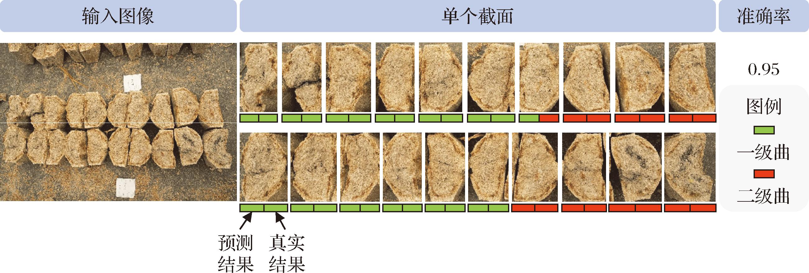如第1节所述,上述截面识别模块和分级判别模块在实际应用时,需要打通它们之间的衔接流程。首先通过截面识别模块识别一张包包曲照片中的所有的包包曲截面,继而通过分级判别模块对识别得到的每个包包曲截面进行分级判别,进而实现包包曲的分级。