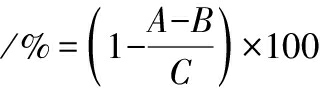 式中:A,0.5 mL样品液加上1 mL DPPH自由基溶液的吸光度值;B,0.5 mL样品液加上1 mL乙醇的吸光度值;C,0.5 mL乙醇加上1 mL DPPH自由基溶液的吸光度值。