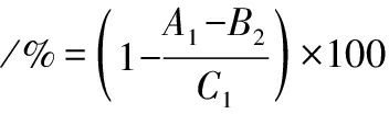 式中:A1,样品测定的吸光度;B1,去离子水代替邻苯三酚溶液测定的吸光度值;C1,去离子水代替样品测定的吸光度值。