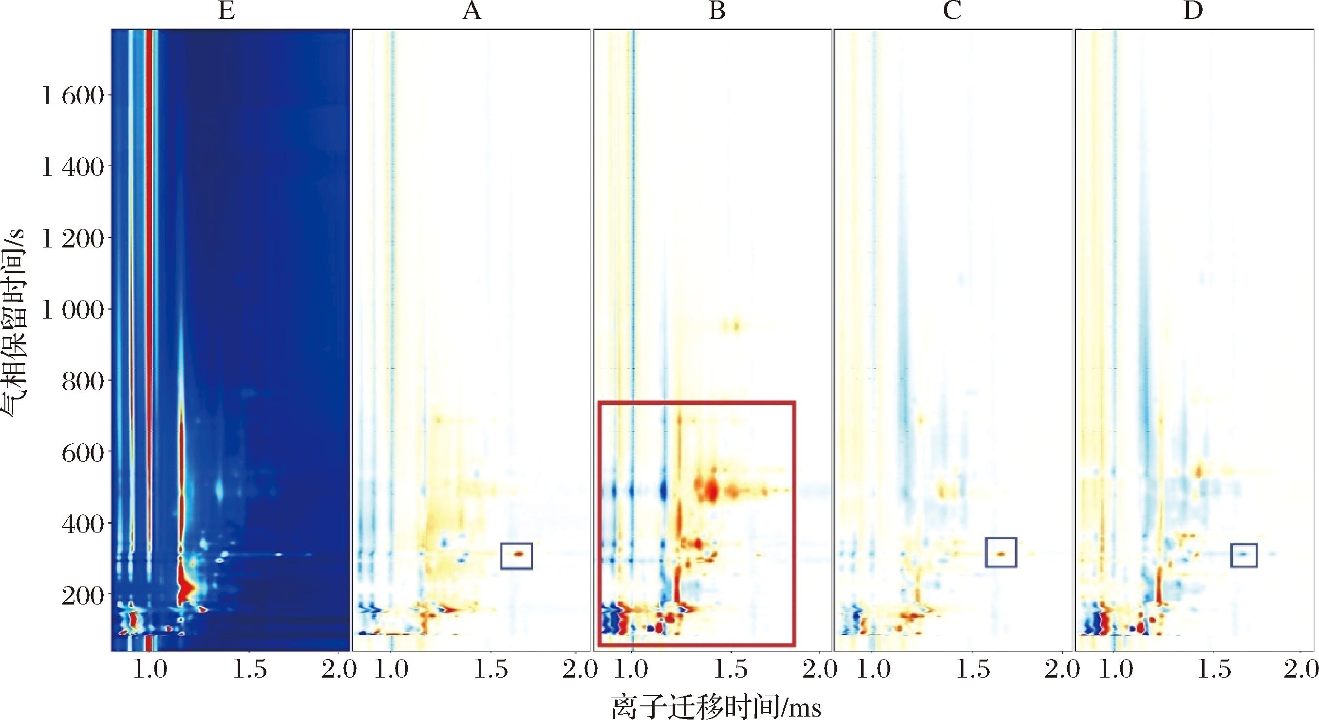 GC-IMS不仅能对样品中挥发性风味物质进行检测,还能对不同样品间风味物质的差异性进行可视化比较。