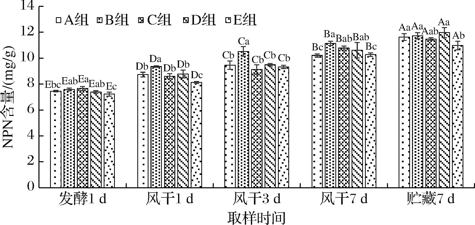 图1 复配乳酸菌对风干牛肉NPN含量的影响