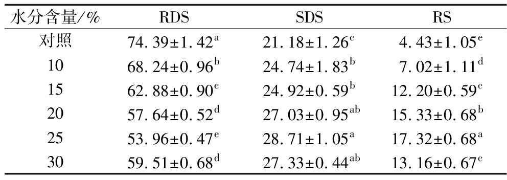 2.1.1.1 湿热处理水分含量对CMF中淀粉消化特性的影响