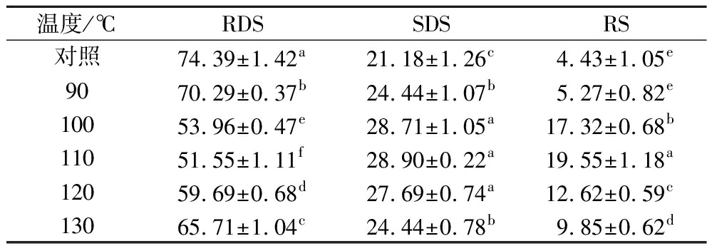 表3 湿热处理温度对CMF中淀粉消化特性的影响 单位:%
