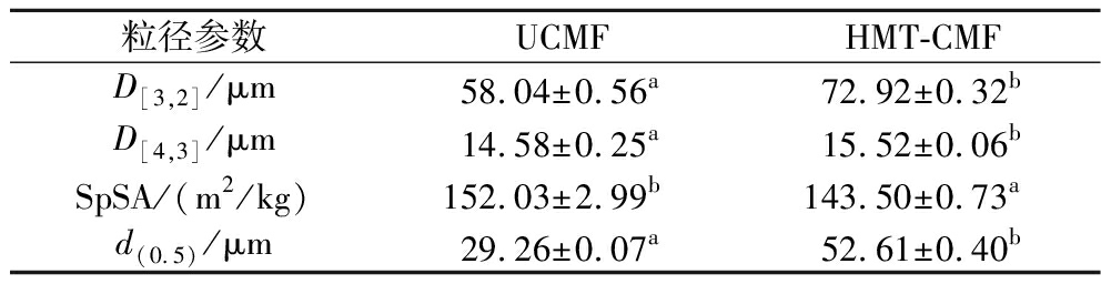 粒径参数UCMFHMT-CMFD[3,2]/μm58.04±0.56a72.92±0.32bD[4,3]/μm14.58±0.25a15.52±0.06bSpSA/(m2/kg)152.03±2.99b143.50±0.73ad(0.5)/μm29.26±0.07a52.61±0.40b