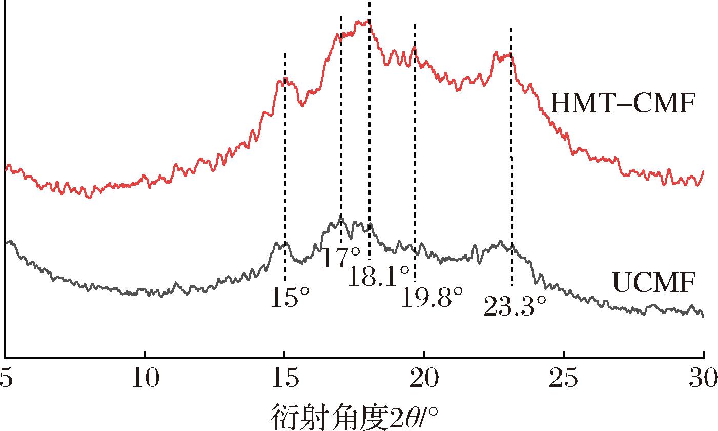 图5 湿热处理前后CMF的XRD图