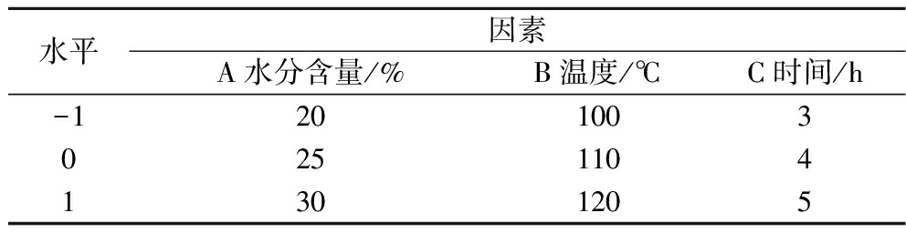 水平因素A水分含量/%B温度/℃C时间/h-120100302511041301205