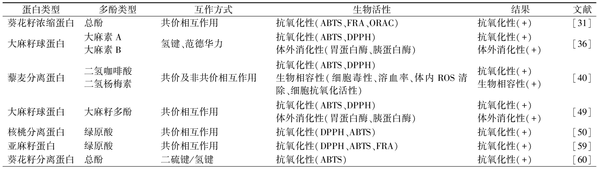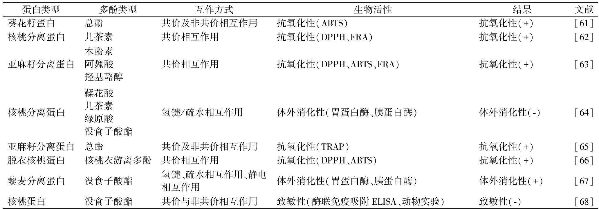 表2 部分特色油料蛋白-内源性多酚相互作用对其生物活性的影响