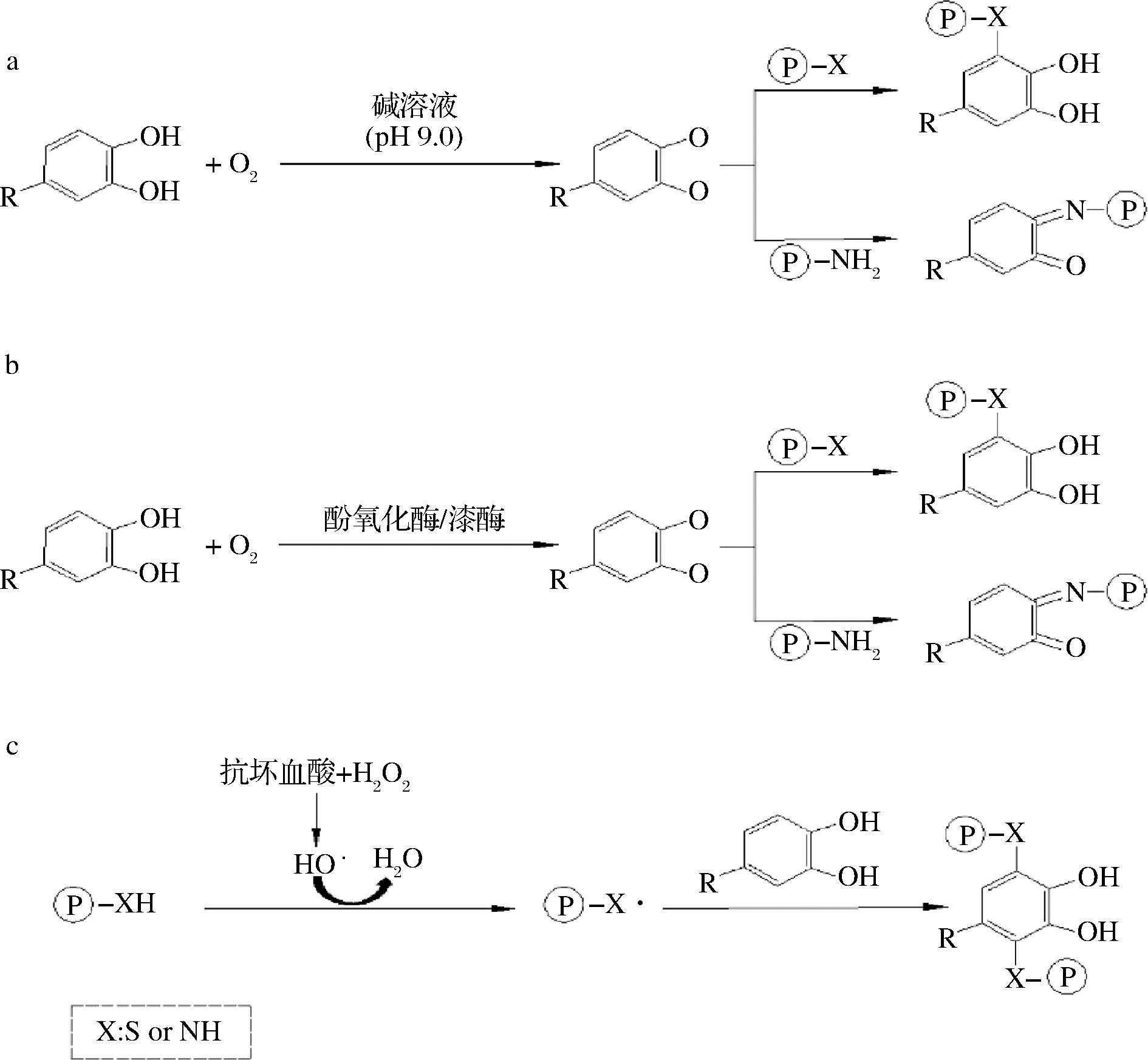 a-碱处理法;b-酶法诱导;c-自由基接枝法
