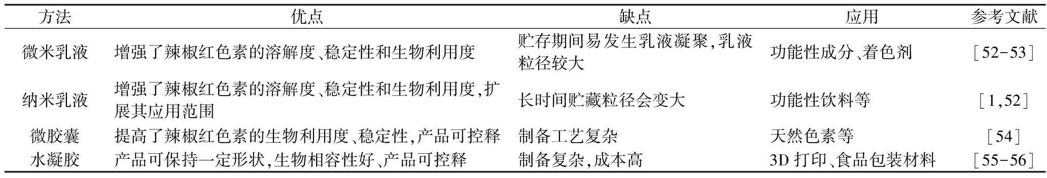 表2 不同辣椒红色素递送系统的优缺点及其应用