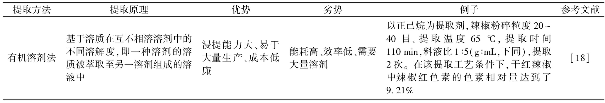 表1 辣椒红色素的不同提取工艺原理及优缺点