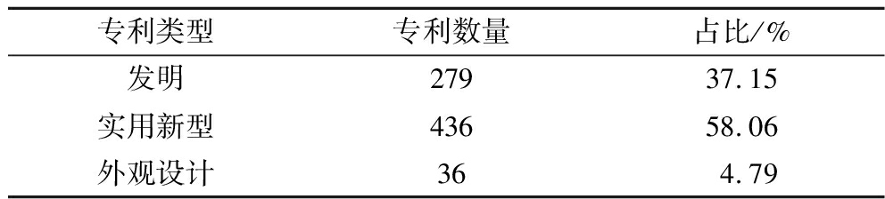 专利类型专利数量占比/%发明27937.15实用新型43658.06外观设计364.79