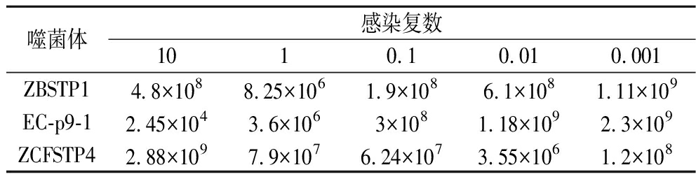 表3 噬菌体最佳感染复数 单位:PFU/mL