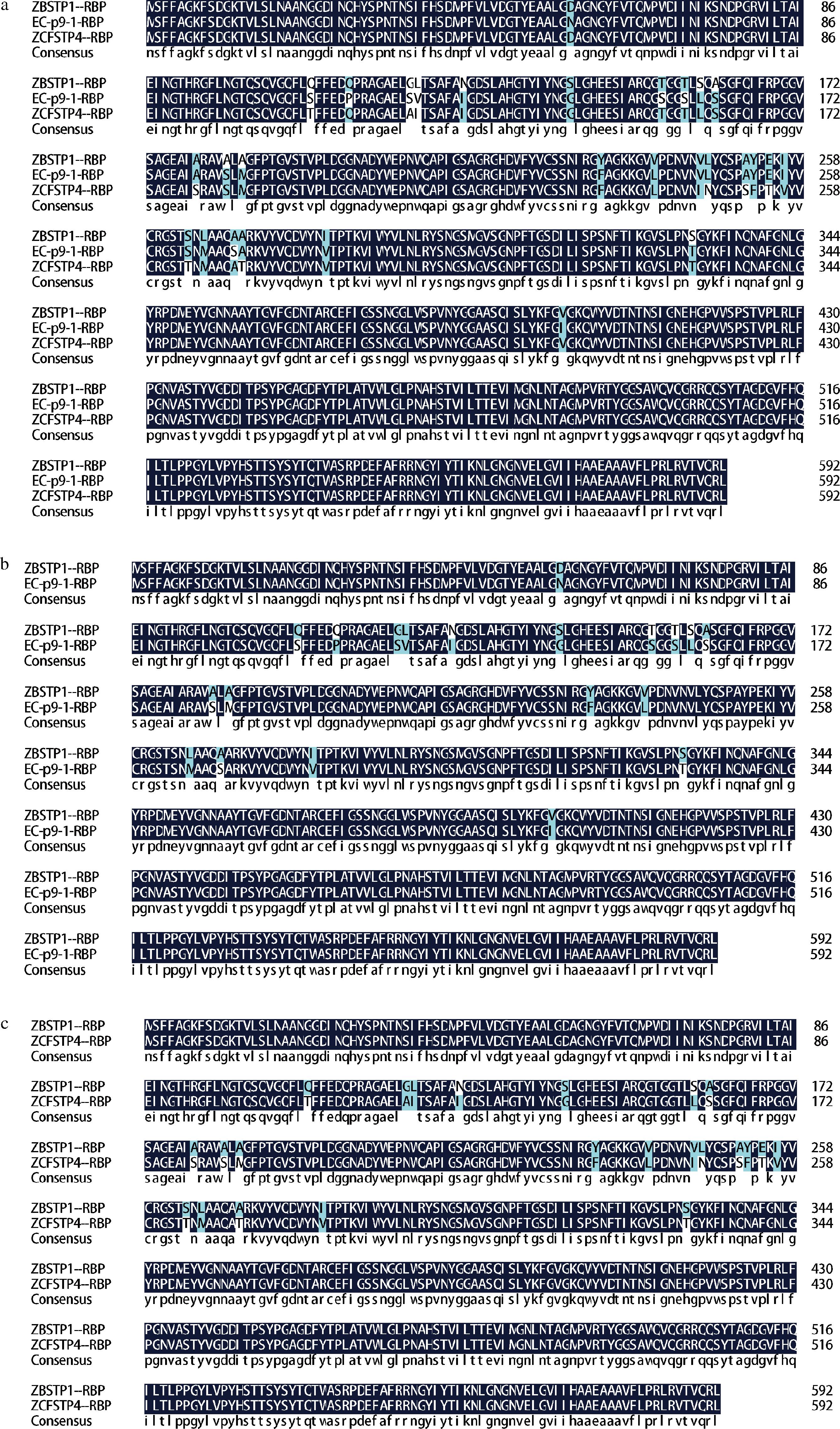 Fig.4 ZBSTP1, EC-p9-1, ZCFSTP4 RBP amino acid alignment analysis