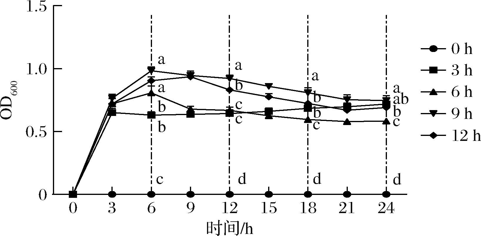 2.3.3 小檗碱的干预时间对S.aureus生长趋势的影响