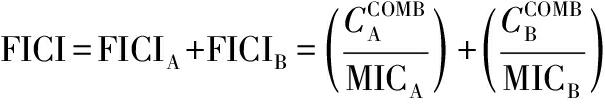 式中:MICA和MICB,单独作用的抗菌剂A和B的和