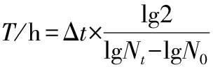式中:Δt,培养时间,h;Nt,培养后细胞量;N0,接种细胞量。
