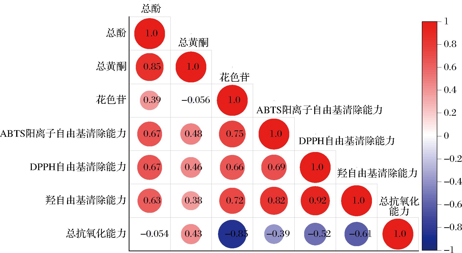 图5 不同比例青稞啤酒多酚与抗氧化性的相关性分析