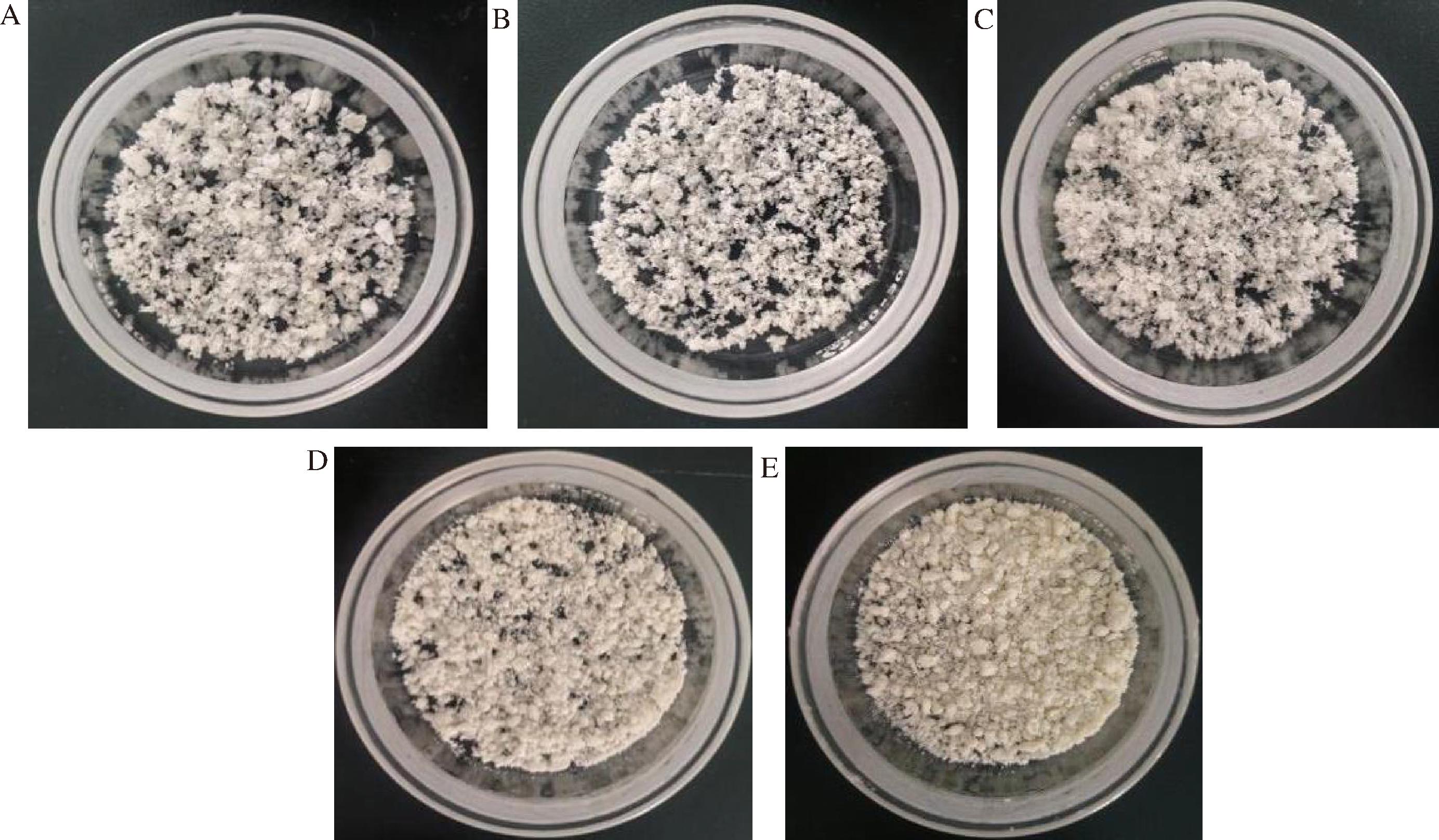 壁材色泽、气味、组织状态AS-MD 1∶1乳白色;无味;颗粒状,疏松,无结块,无外来杂质AS-MD 1∶2乳白色;无味;颗粒状,疏松,无结块,无外来杂质AS-MD 1∶3乳白色;无味;颗粒状,疏松,无结块,无外来杂质SPI-MD 3∶1乳白色;无味;粉末状,疏松,结块,无外来杂质SPI-MD 3∶2乳白色;无味;粉末状,疏松,结块,无外来杂质