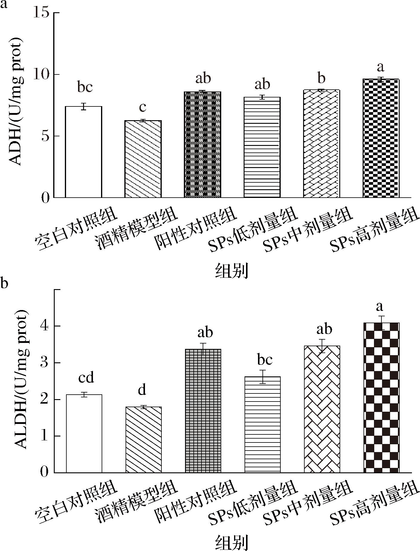 2.2.1 SPs对小鼠肝脏酒精代谢酶系的影响