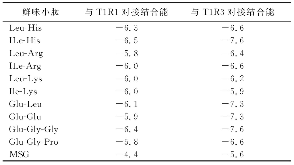 表5 鲜味肽与T1R1、T1R3受体对接结合能 单位:kcal/mol